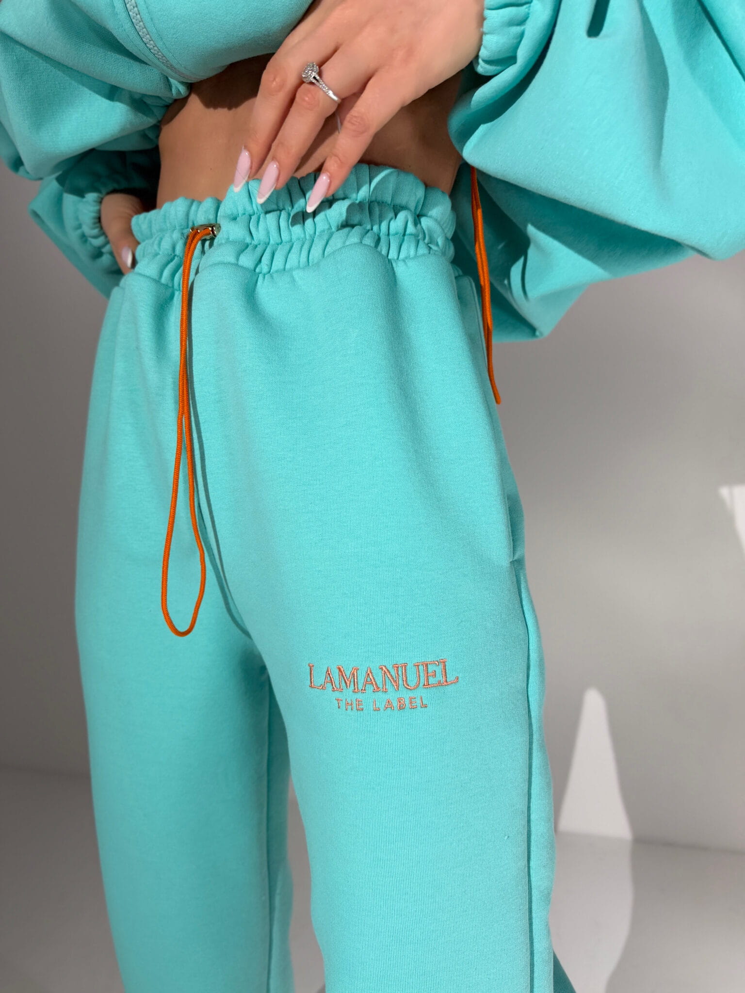 Kultowy krój dresów z wysokim stanem i regulacją w pasie wraca w nowej, wiosennej wersji kolorystycznej. Ten sam miękki materiał, te same idealne proporcje, ta sama wygoda. Logo LAMANUEL w formie haftu podkreśla jakość, a dopasowane detale sprawiają, że to must-have na nowy sezon.
