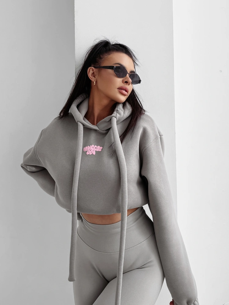 Miękka, oversize’owa bluza z obszernym kapturem i wydłużonymi troczkami. Wykonana z wysokiej jakości przyjemnego oraz otulającego materiału. Z przodu subtelny, puchaty napis PRINCESS OLV w stylu „bubble”. Tył zdobi wyrazisty nadruk PRINCESS OLV.