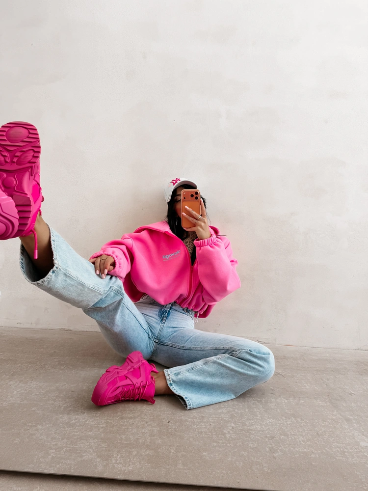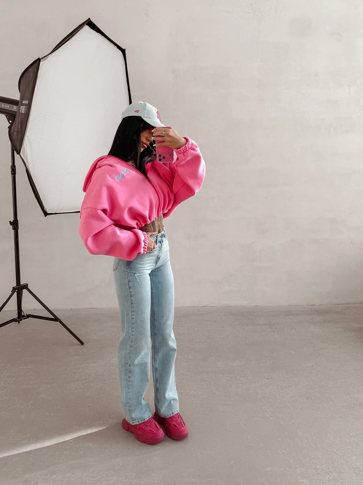 Oversize’owa, rozpinana bluza z kapturem o krótszym kroju. Wykonana z wysokiej jakości bawełny. Elastyczne ściągacze na brzegach. Przód zdobi minimalistyczny haft z logo OLAVOGA, natomiast tył wyróżnia obszerny haft brandu.