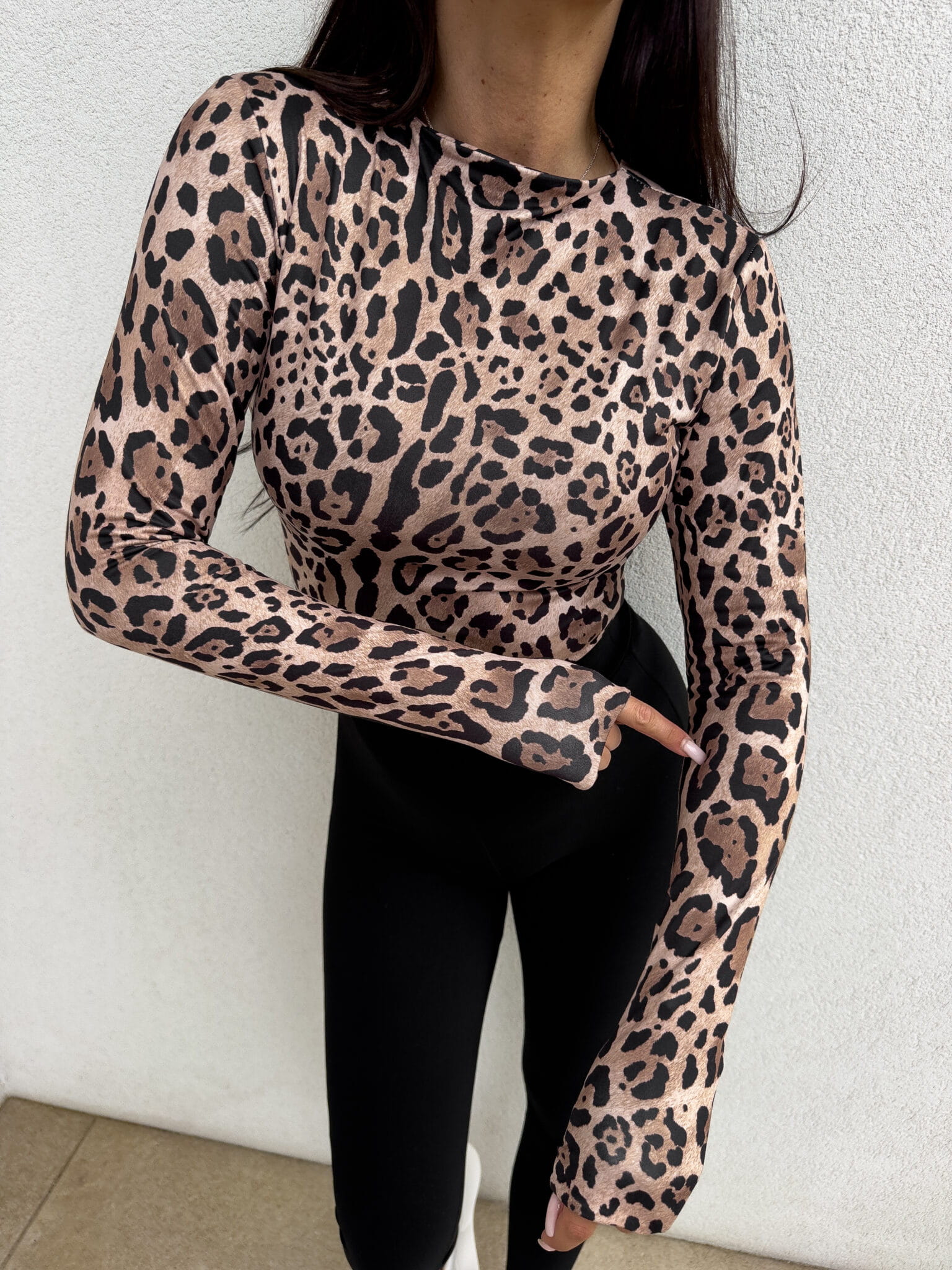 BLUZKA BY ME SKIN PRINT PANTERA CZEKOLADOWO CZARNA