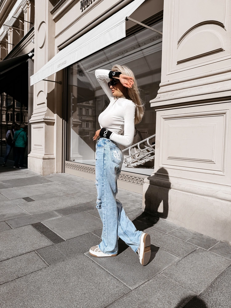 Dopasowany fason - długi rękaw - okrągły dekolt - kontrastowe wstawki - logowanie na rękawach .