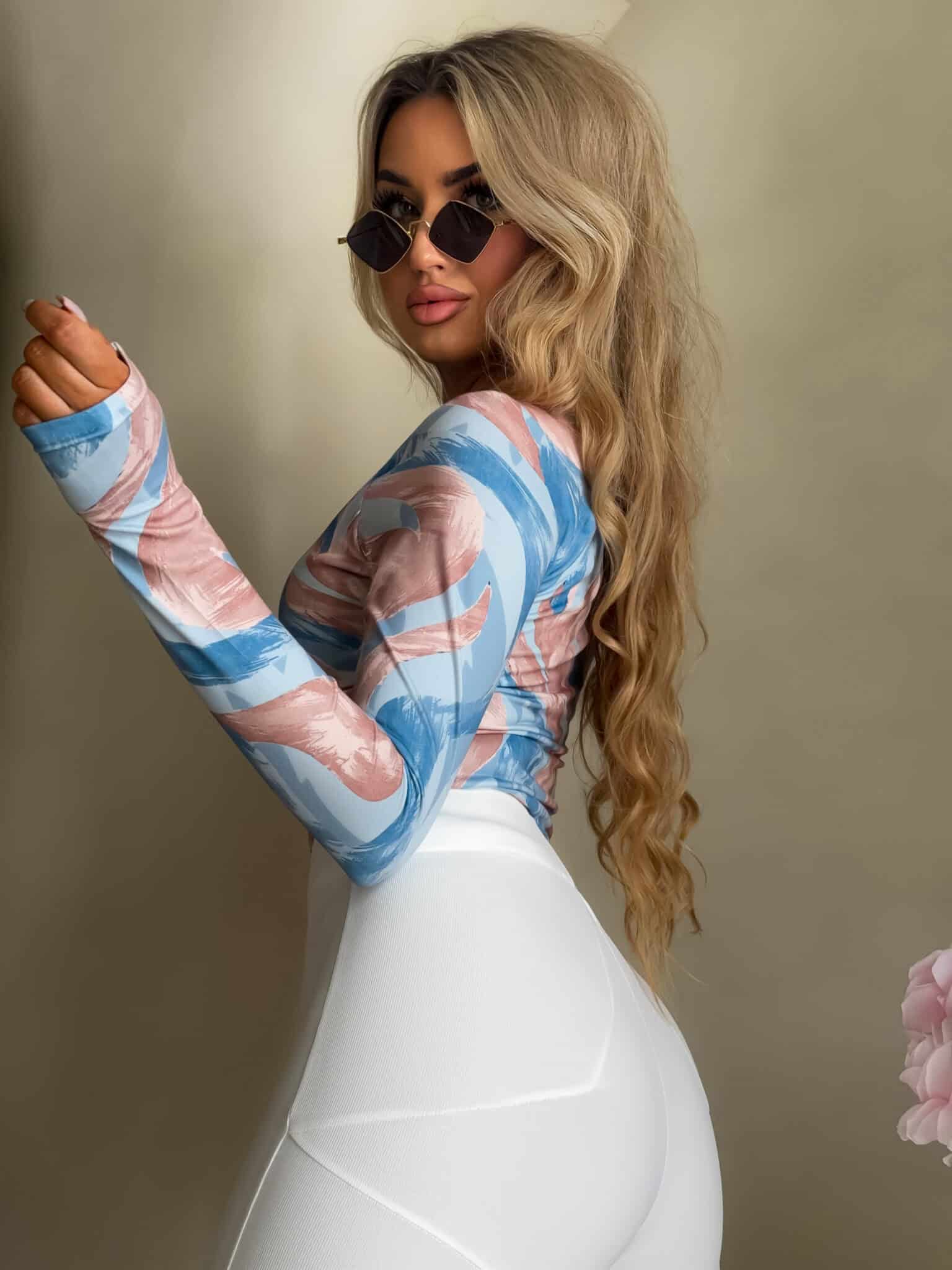 BLUZKA LINDA BY ME PRINT NIEBIESKO BEŻOWA
