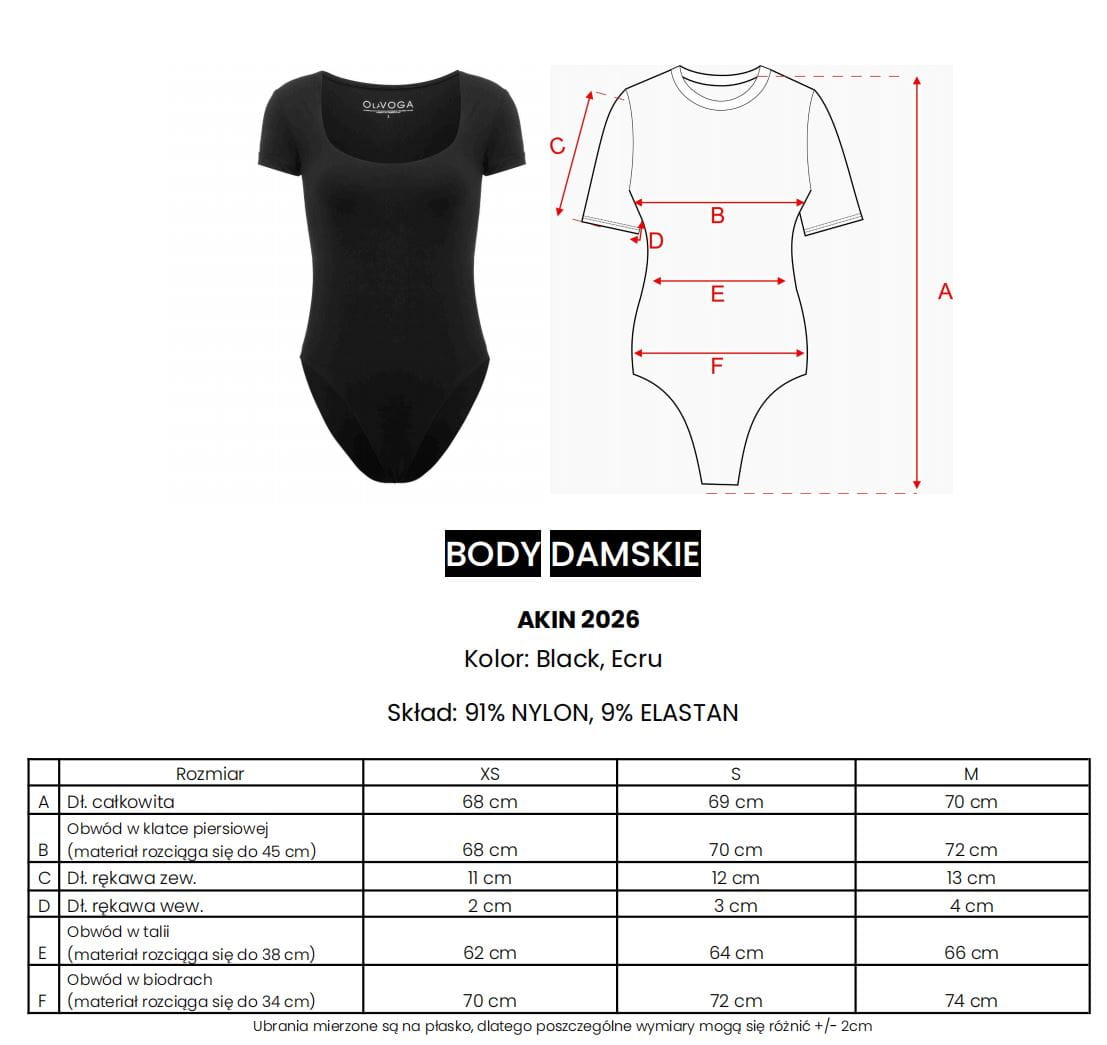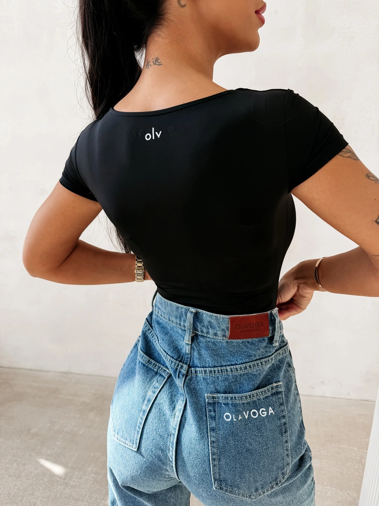 Dopasowane body - elastyczna tkanina - model podkreślający sylwetkę - komfortowy fason - krótki rękaw - okrągły dekolt - subtelne logo OLV na plecach.
