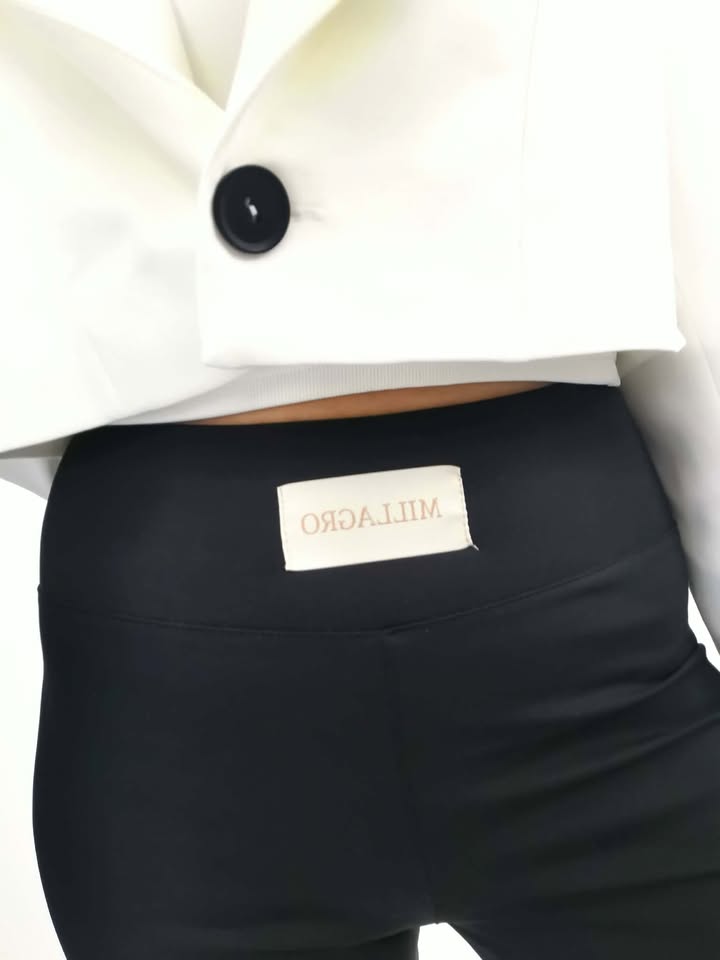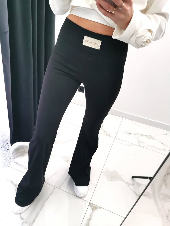 Eleganckie dzwony z wysokim stanem, które pięknie podkreślają sylwetkę i optycznie wydłużają nogi. Wykonane z elastycznego, komfortowego materiału – idealne zarówno na co dzień, jak i w stylowych zestawach casual.