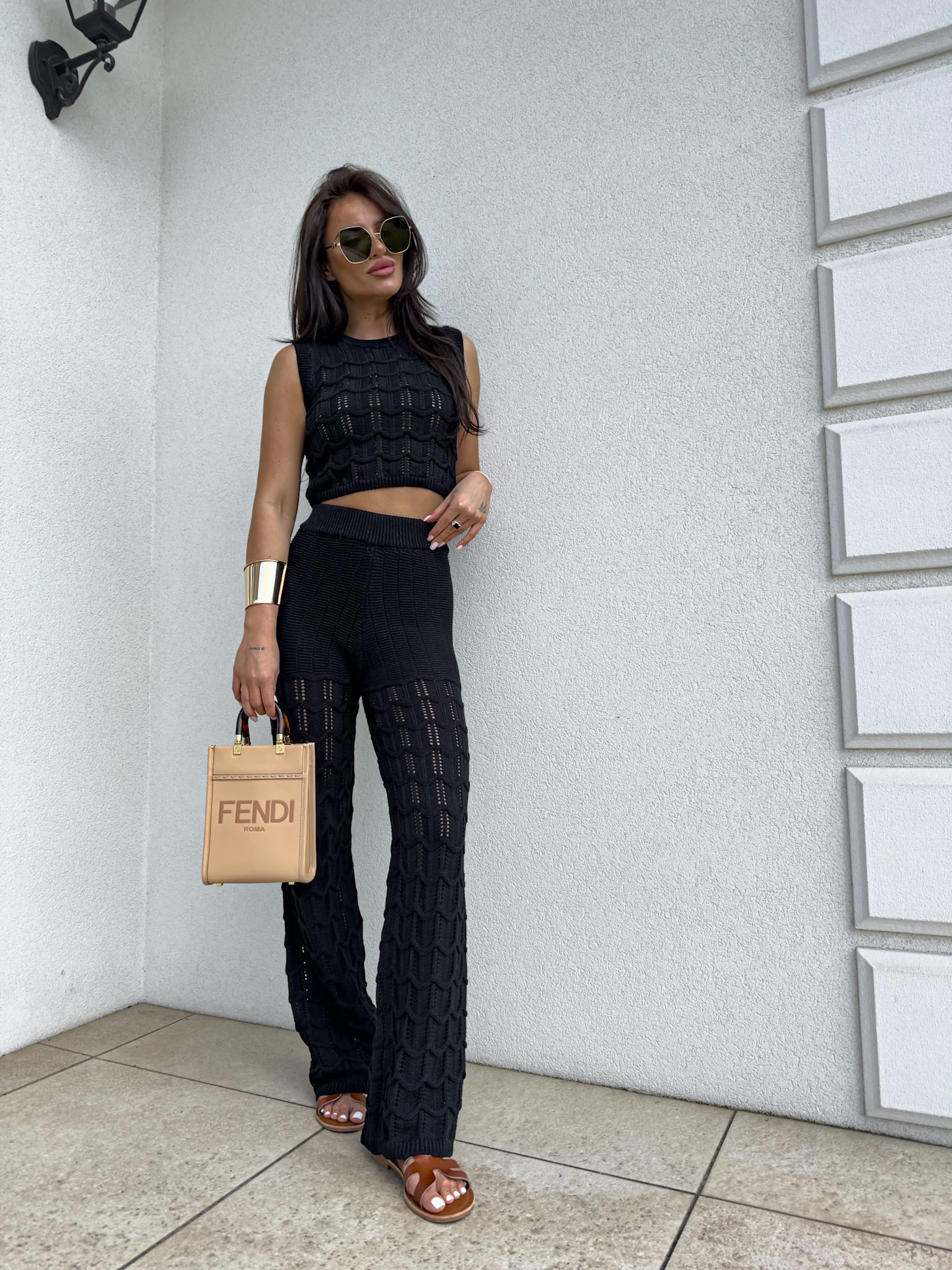 Komplet ażurowy składający się z topu i spodni z gumką w pasie to idealna propozycja na ciepłe dni, łącząca elegancję i komfort. Ażurowy wzór topu nadaje całości lekkiego i subtelnego charakteru, a miękki materiał zapewnia przewiewność i wygodę. Spodnie z gumką w pasie dopasowują się do sylwetki, gwarantując wygodę i swobodę ruchów. Taki komplet świetnie sprawdzi się na wakacyjne wyjazdy, letnie spotkania czy codzienne stylizacje w ciepłych miesiącach. Idealny do połączenia z sandałami, espadrylami czy delikatnymi akcesoriami, tworząc modny, a zarazem komfortowy look.