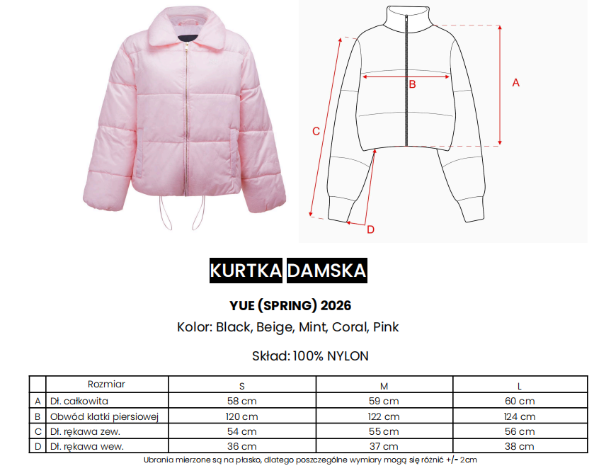 KURTKA DAMSKA OLAVOGA YUE SPRING RÓŻOWA