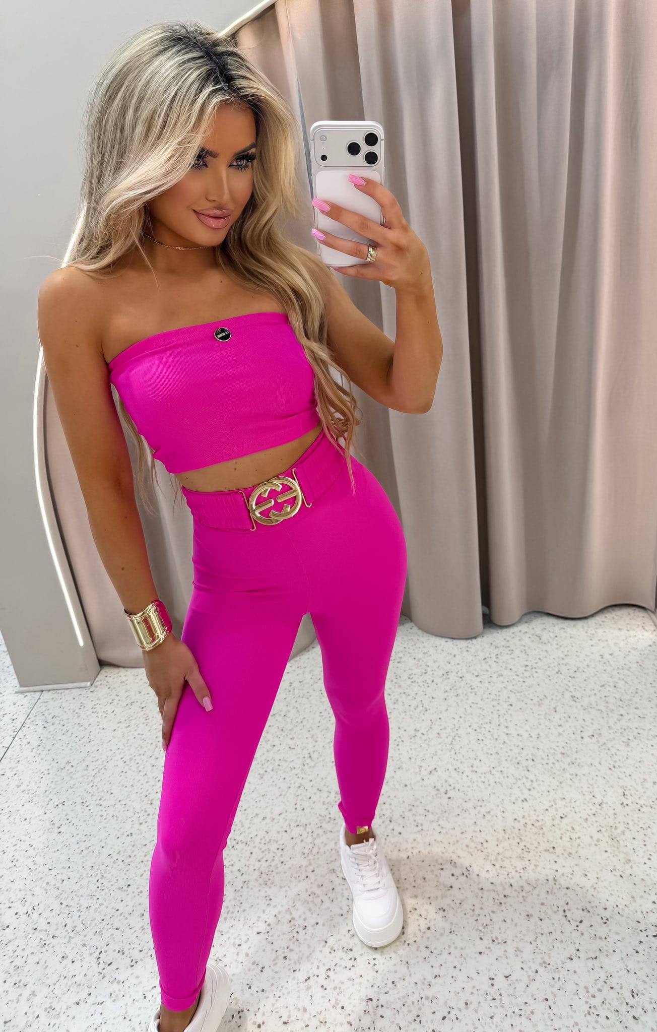 Dopasowane legginsy z wysokim stanem, które pięknie modelują talię i podkreślają sylwetkę. Wykonane z elastycznego, miękkiego materiału zapewniającego maksymalny komfort i swobodę ruchów. Idealne zarówno do sportowych stylizacji, jak i codziennych, modnych zestawów.