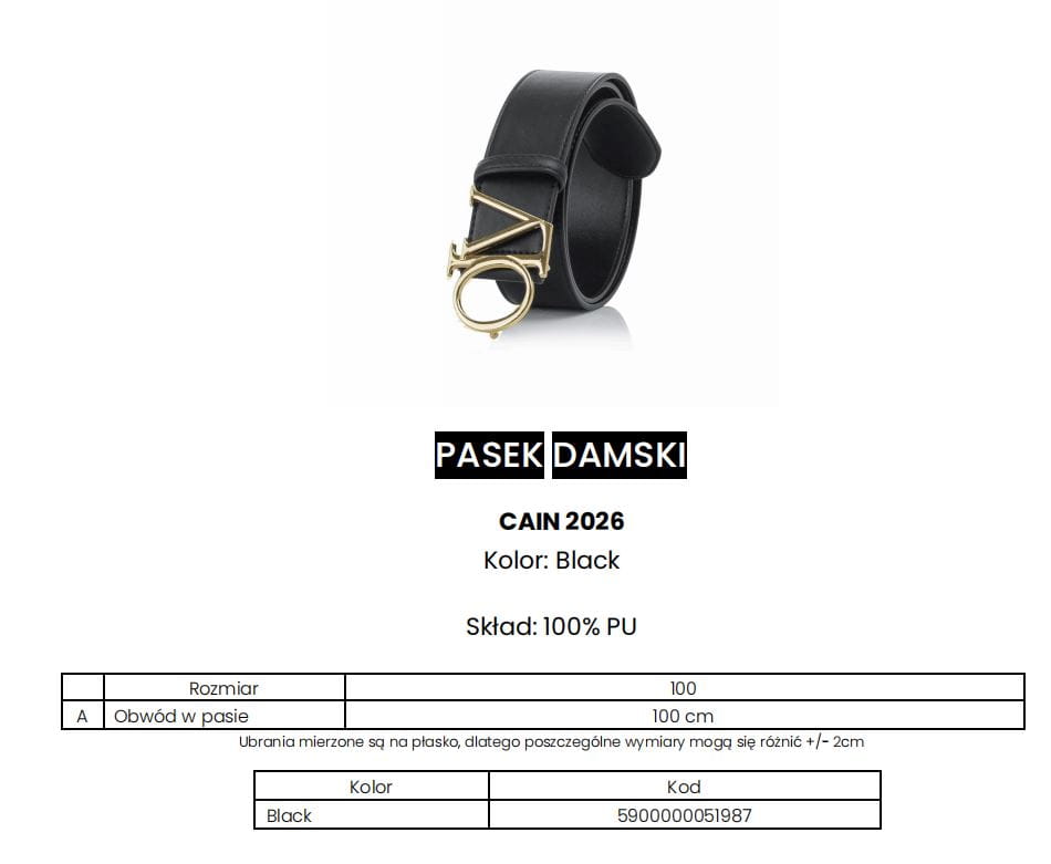 PASEK DAMSKI OLAVOGA CAIN CZARNY