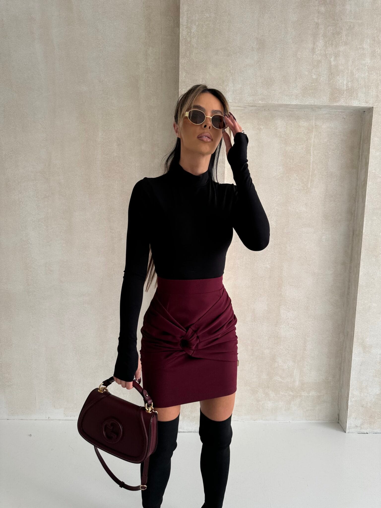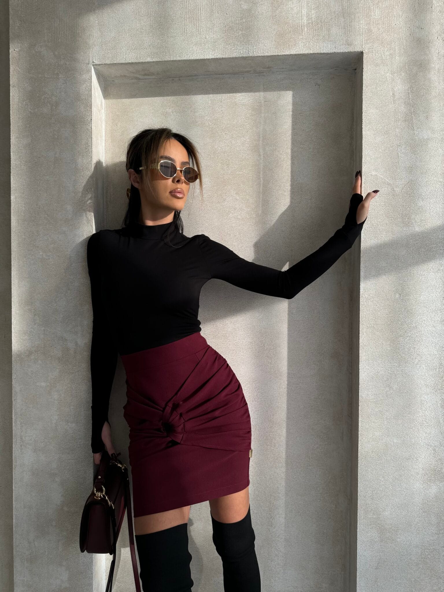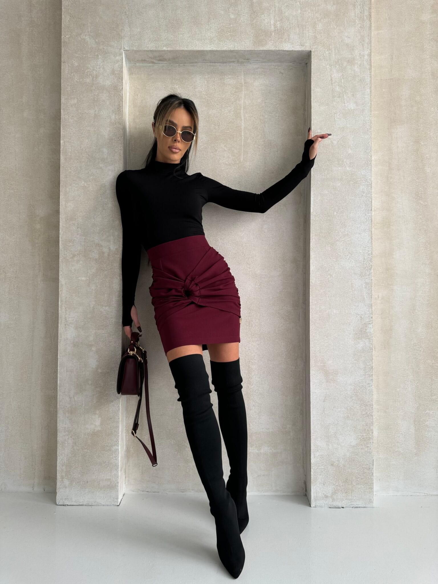 Stylowa spódnica mini z subtelnym marszczeniem na przodzie, które pięknie modeluje sylwetkę, oraz ozdobnym oczkiem, które dodaje jej unikalnego charakteru. Krótszy krój idealnie podkreśla nogi. Ta spódnica to doskonały wybór na imprezy, wieczorne wyjścia czy casualowe stylizacje, łącząc wygodę z kobiecym urokiem.