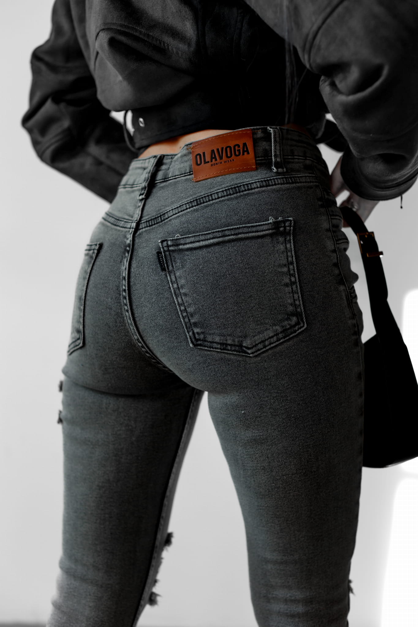 Idealnie przylegające jeansy. Wykonane z wysokiej jakości elastycznego, bawełnianego materiału. Z przodu jak i z tylu kieszenie. Logowany guzik. Skórzana naszywka na tyle produktu z logo marki OLAVOGA. Produkt posiada przetarcia. Przy pasie dodatkowy materiał.
