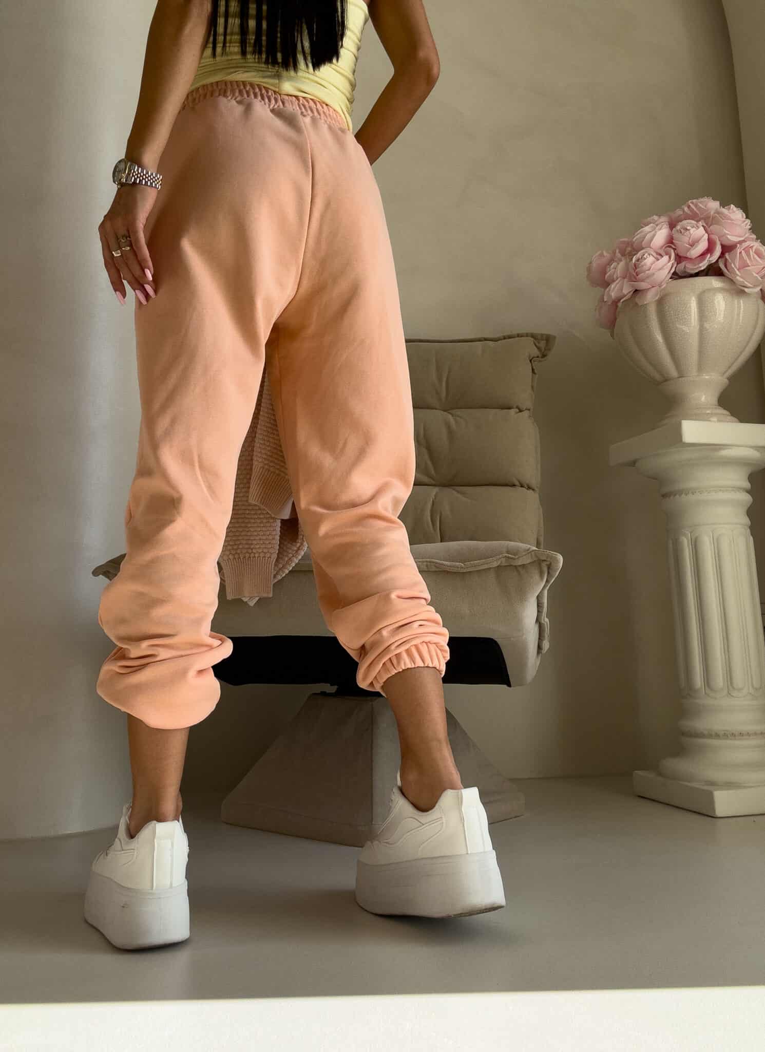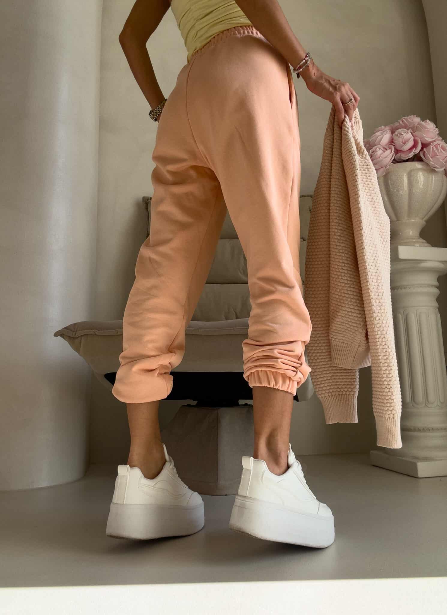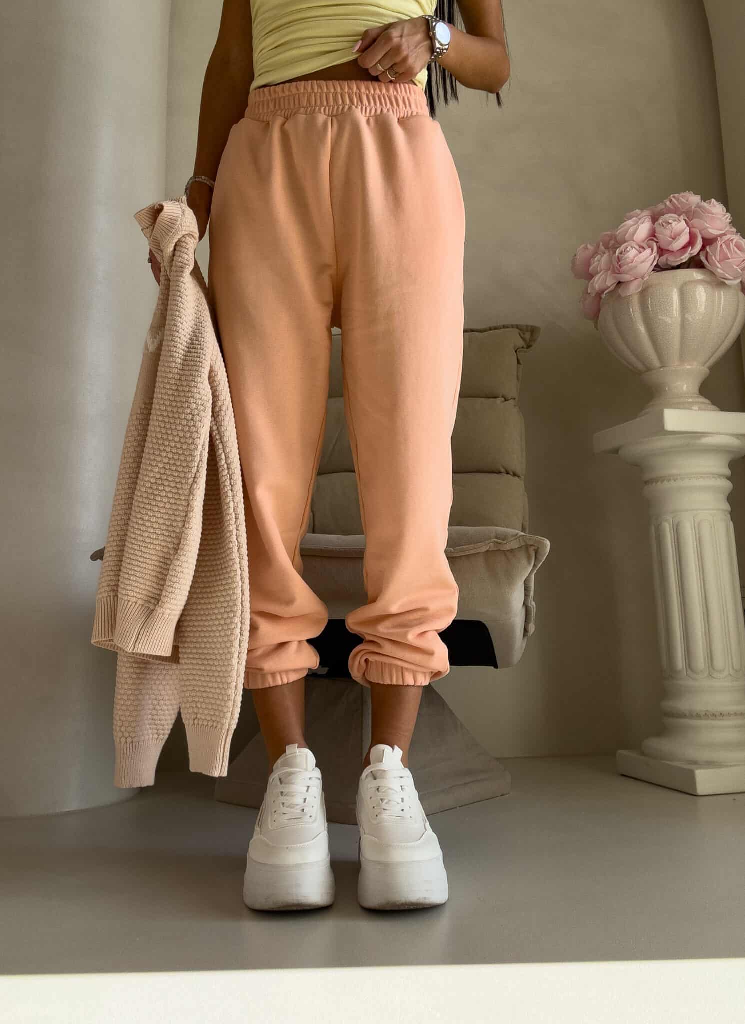 Spodnie dresowe – dopasowane, z elastycznym pasem w talii i ściągaczami na dole nogawek. Ich krój podkreśla sylwetkę, zachowując jednocześnie pełną swobodę ruchów.