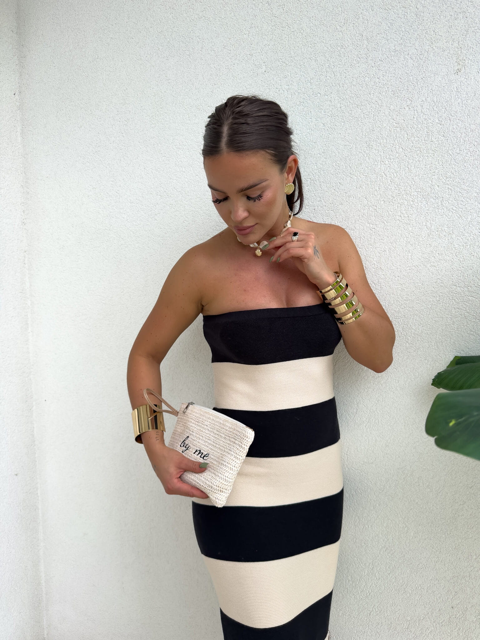 Zmysłowa i kobieca sukienka maxi z odkrytymi ramionami to idealny wybór na wyjątkowe okazje. Wykonana z lekkiego, zwiewnego materiału, subtelnie opływa sylwetkę, podkreślając jej atuty. Dekolt wykończony elastyczną gumką zapewnia wygodę noszenia i doskonałe dopasowanie, a rozcięcie z boku dodaje stylizacji nuty zmysłowości i lekkości. Uwagę przyciąga przepiękny, odpinany kwiat, który możesz dowolnie stylizować – noś go na sukience, wpięty we włosy lub przy torebce. Idealna na specjalne okazje, romantyczne kolacje czy letnie przyjęcia.