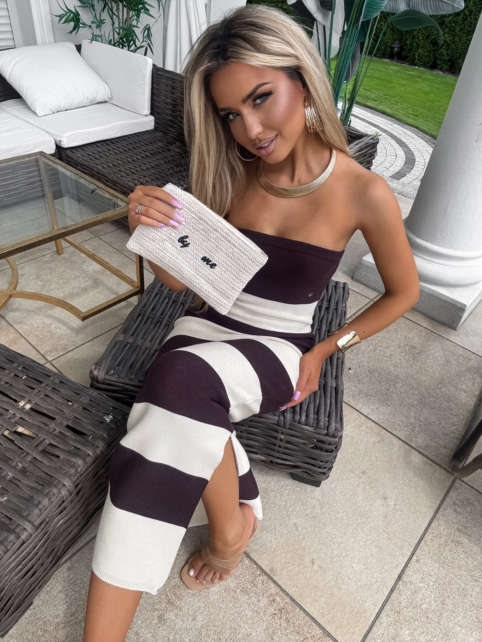 SUKIENKA BY ME SPAIN CZEKOLADOWO BEŻOWA PASY