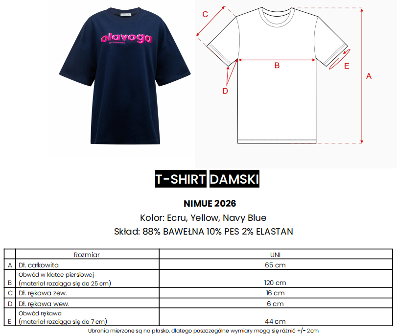 Swobodny oversize’owy krój - okrągły dekolt - krótki szeroki rękaw - kontrastowy haft na przodzie z shadow effect - nowoczesny, wyrazisty charakter.