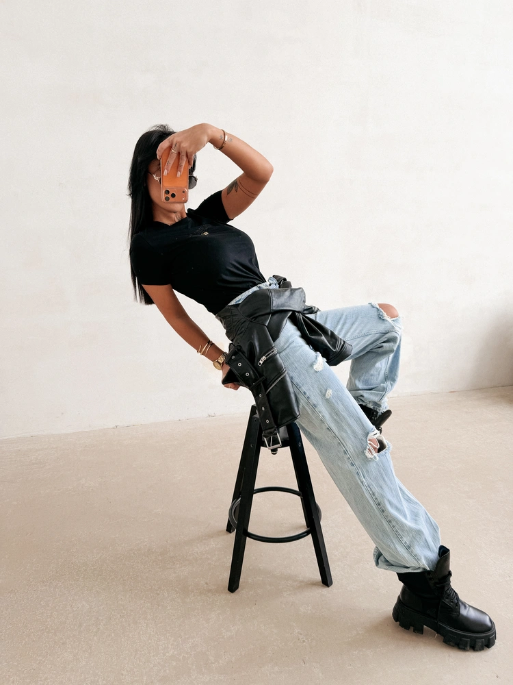Idealnie dopasowany t-shirt o prostym kroju. Wykonany z wysokiej jakości, elastycznego materiału o gładkiej, miękkiej strukturze z domieszką wiskozy. Klasyczny krój z krótkim rękawem. Na przodzie delikatne, tłoczone logo marki OLAVOGA uzupełnione metalicznym detalem.
