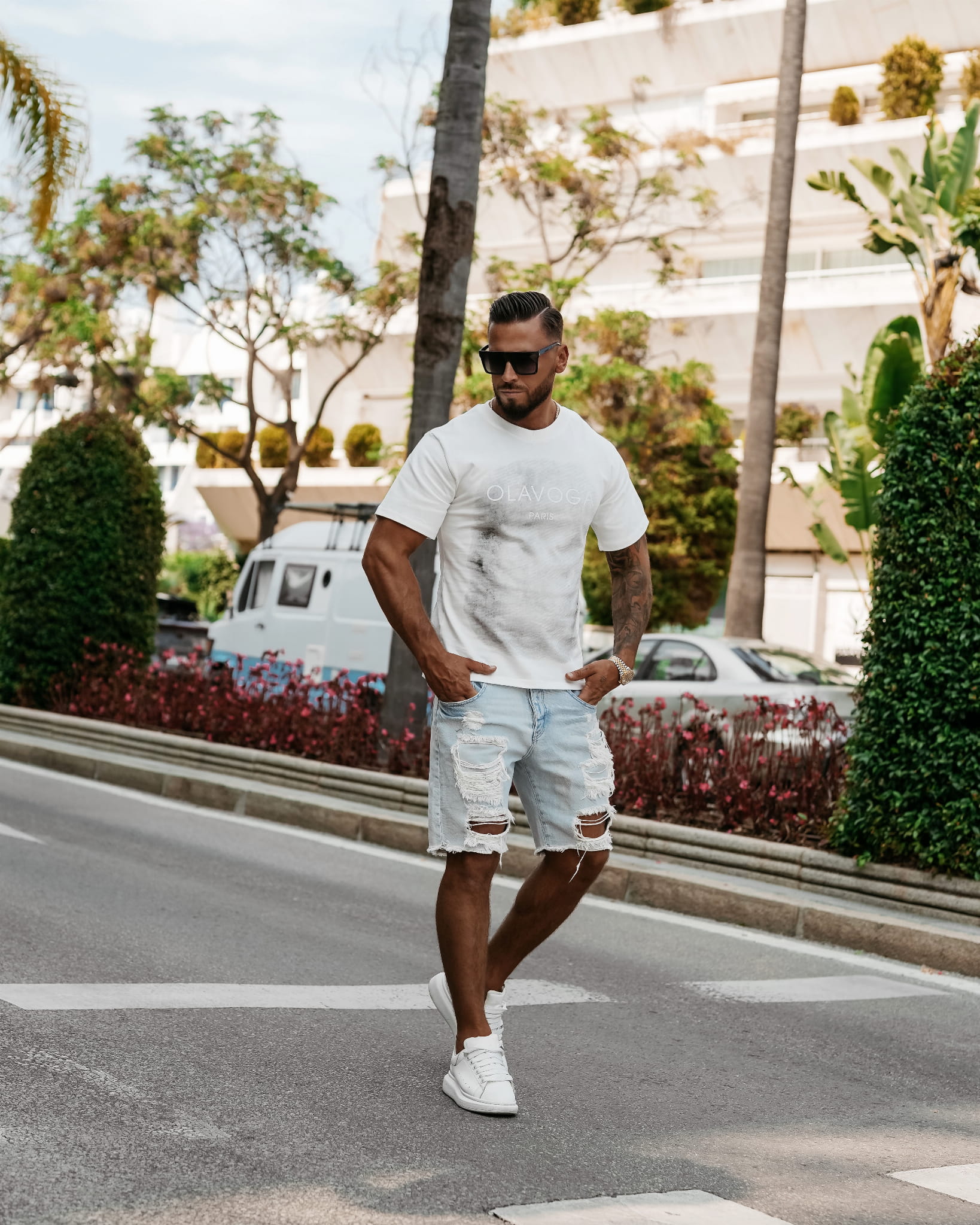 Klasyczny t-shirt z krótkim rękawem, o prostym kroju. Wykonany w 100% z materiału bawełnianego. Na przodzie jak i tyle obszerne logo marki OLAVOGA z napisem PARIS.