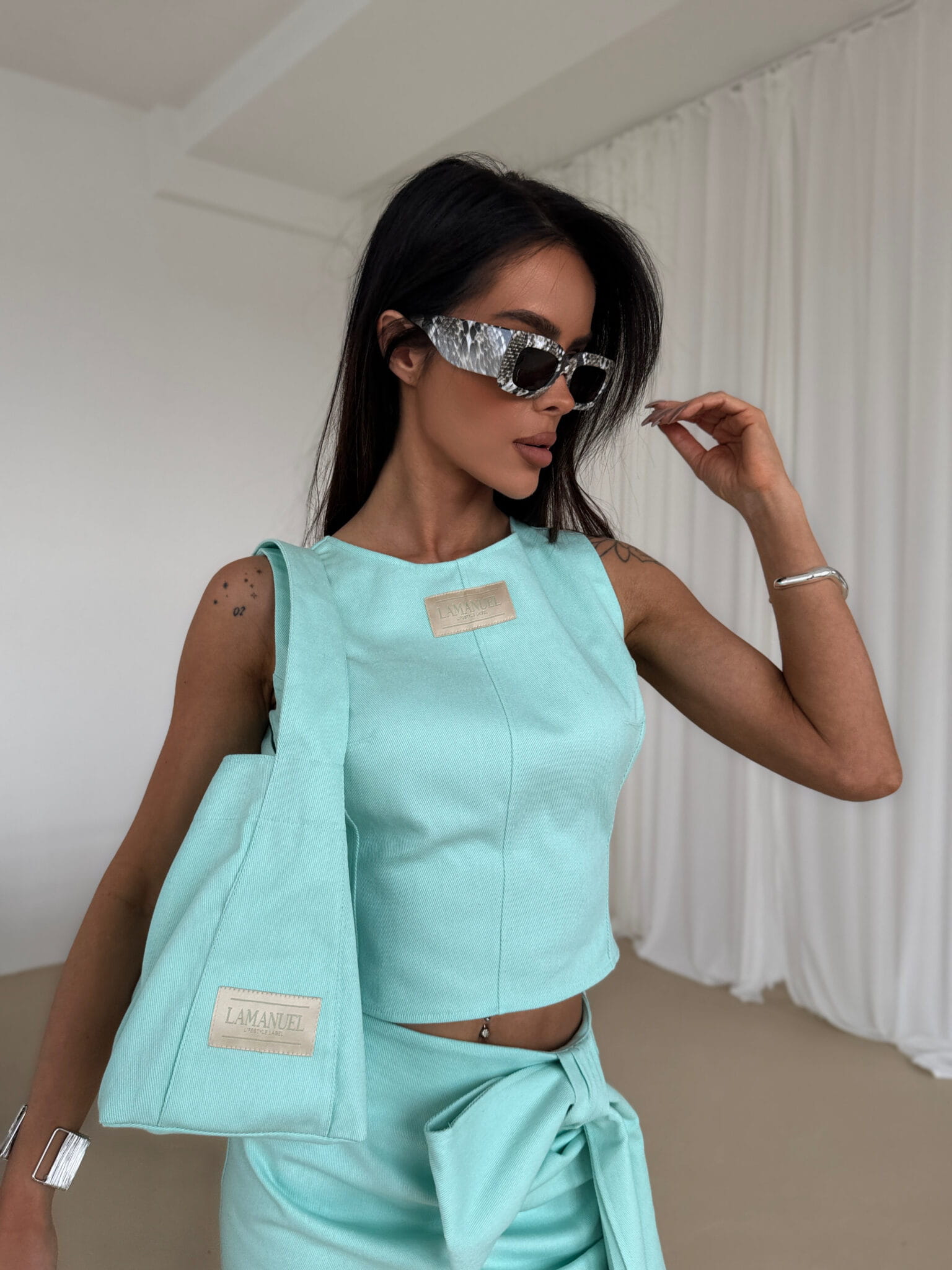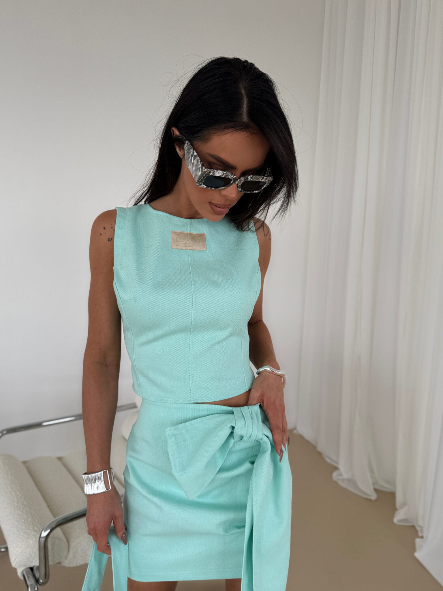TOP DAMSKI LAMANUEL DENIM MIĘTOWY